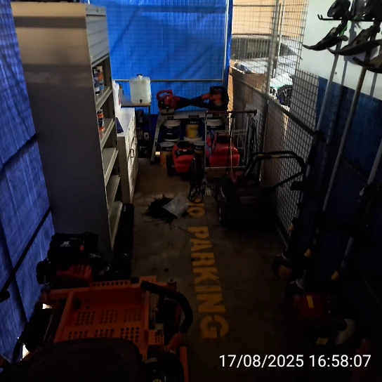 On 15 August 2025, without evidence of registered Special By-Law, the cage was fully occupied with various equipment, including ride-on mower (tragically funny that the ride-on mower was parked near large sign on the concrete base which said "no parking" - is any fuel canister or flammable liquid also located inside the cage?):