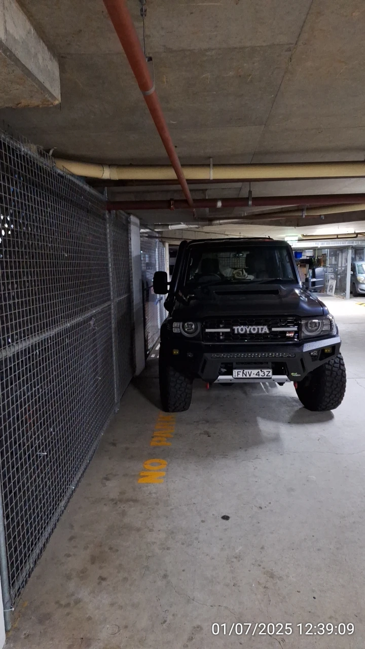 10 June 2025 - Uniqueco Property Management Director Steve Carbone, as witnessed by handyman Warwick and two technicans from FlameSafe, happily encouraged Lot 158 to take photo of his car illegally parked in private garage in basement of Block D: