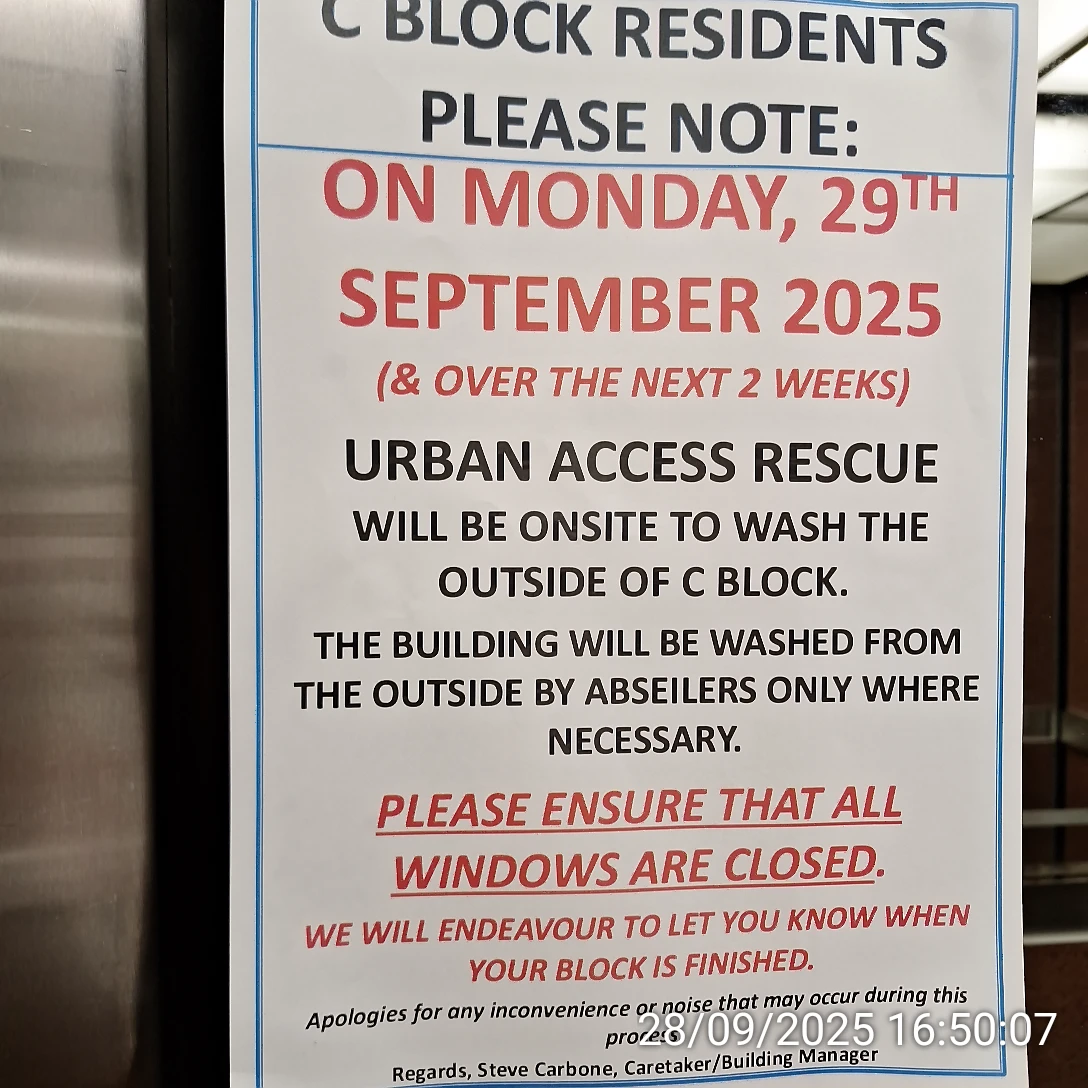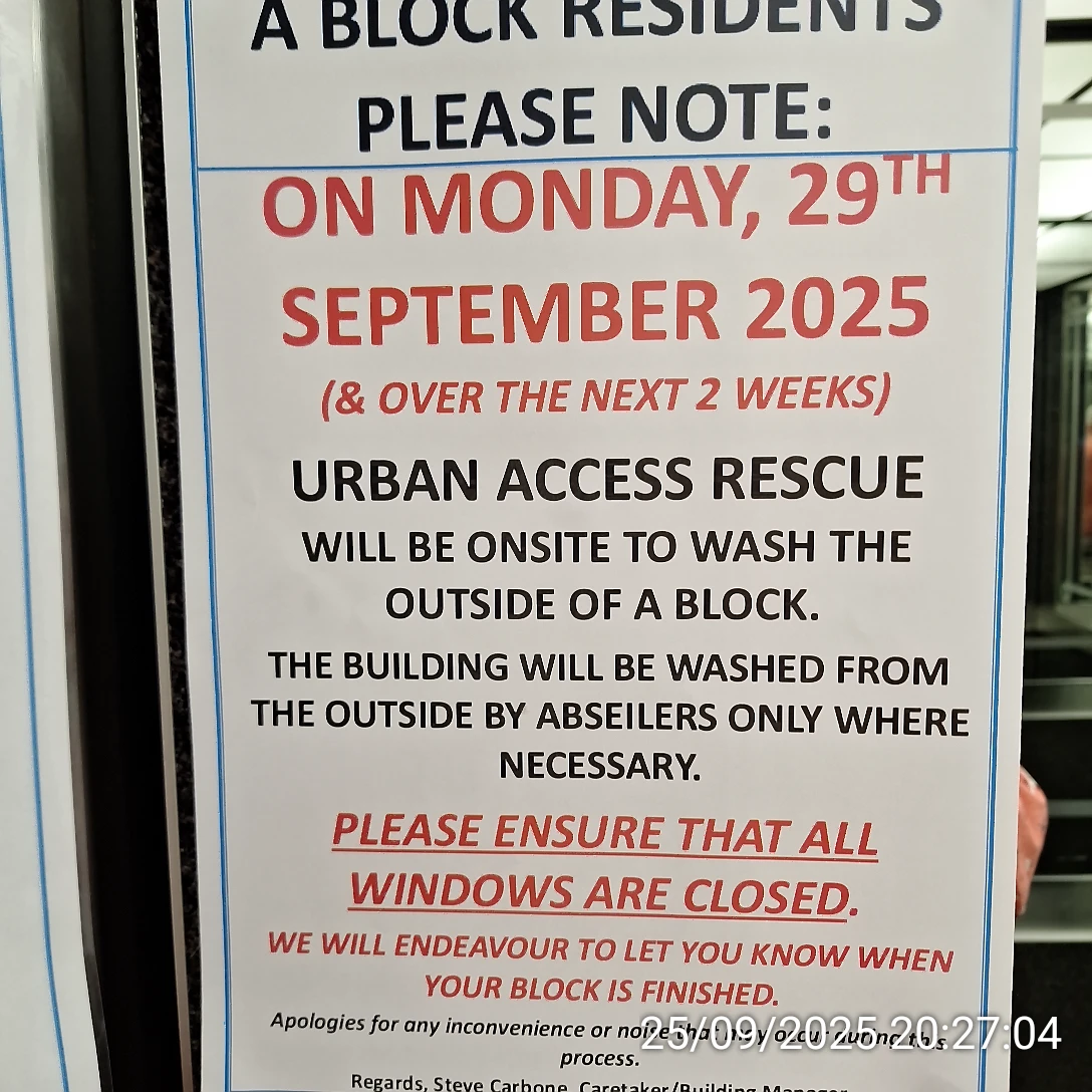On 11 September 2025, Waratah Strata Management and Uniqueco Property Services were again warned about the lack of their services, as the video showed: