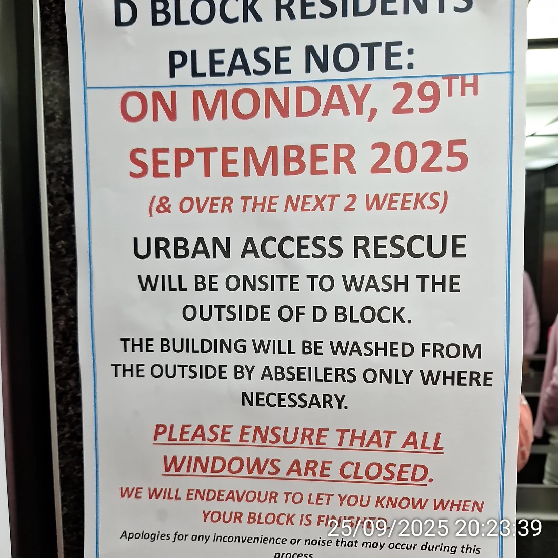 On 3 June 2024, there was a shy notice about three rooftop exhaust fans not working in Block A: