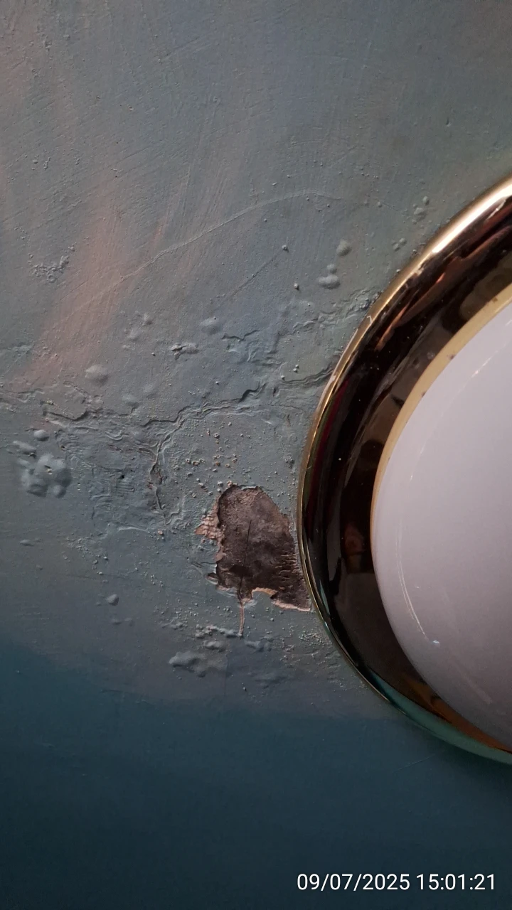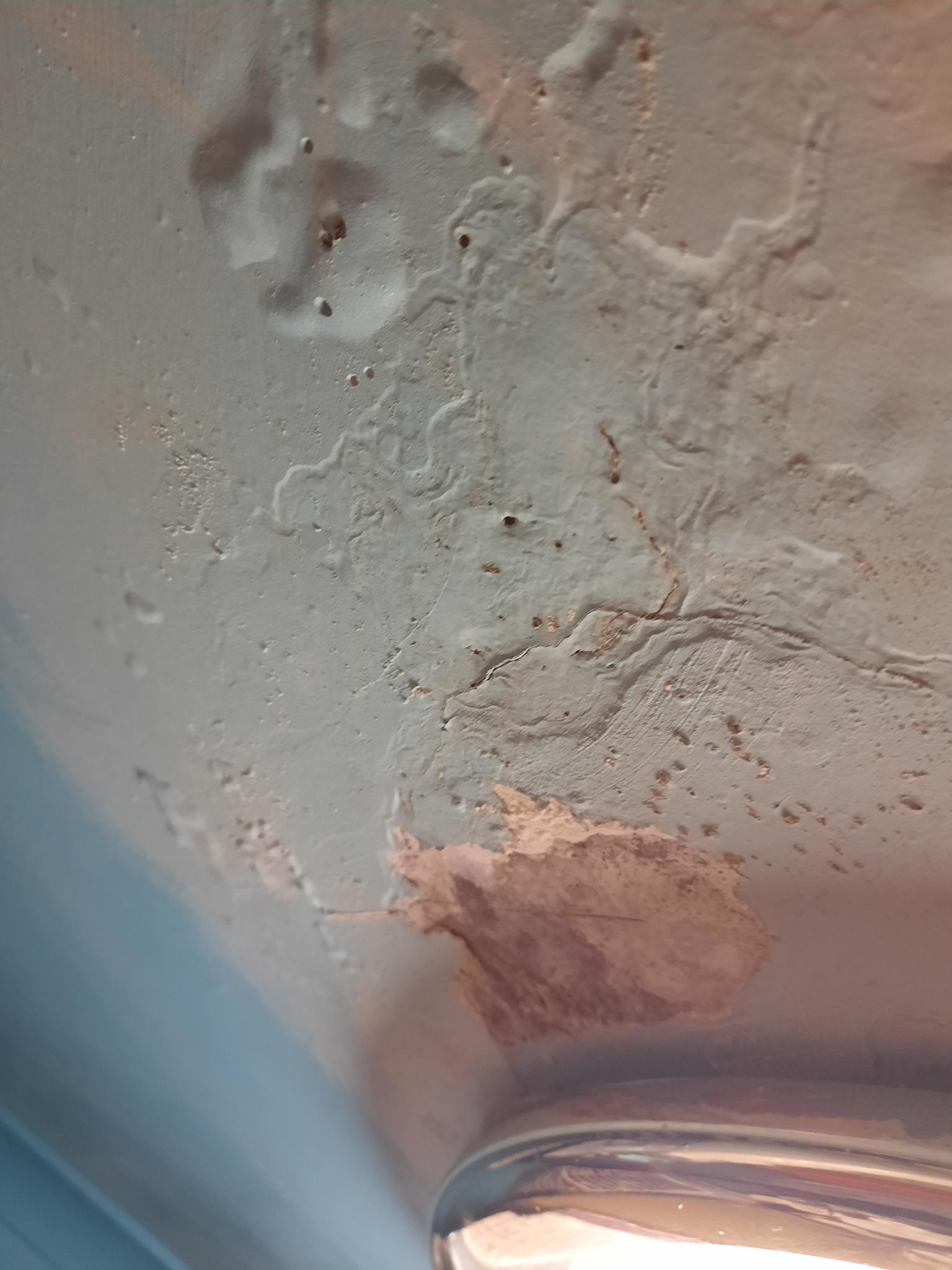 Ceiling repairs and repainting were organised for 27 August 2025 and only time would tell if that was successful.