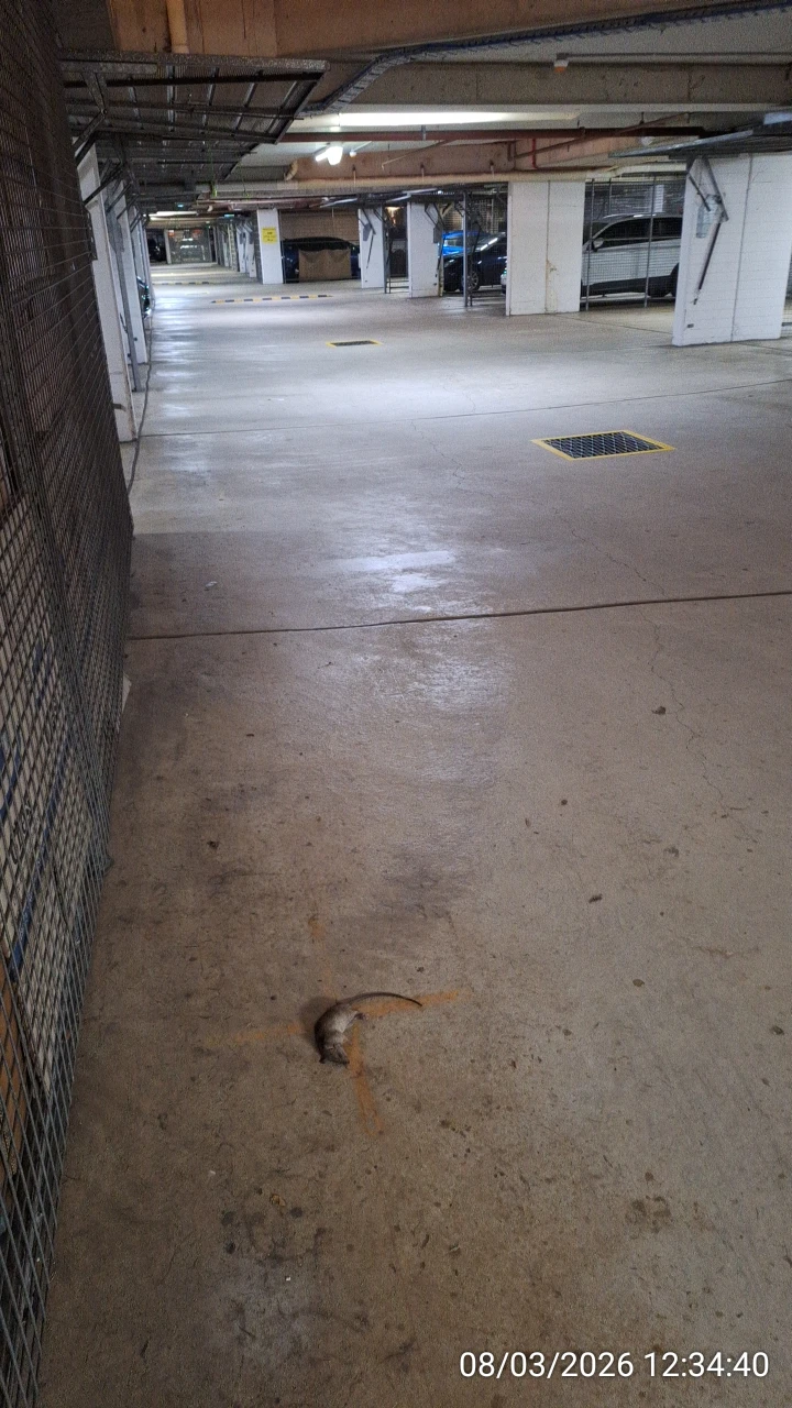Dead large rat was found in basement of Block A on 7 March 2026. It is not clear for how long it was there. The fact is that rats are commonly seen in garages: