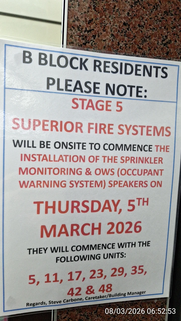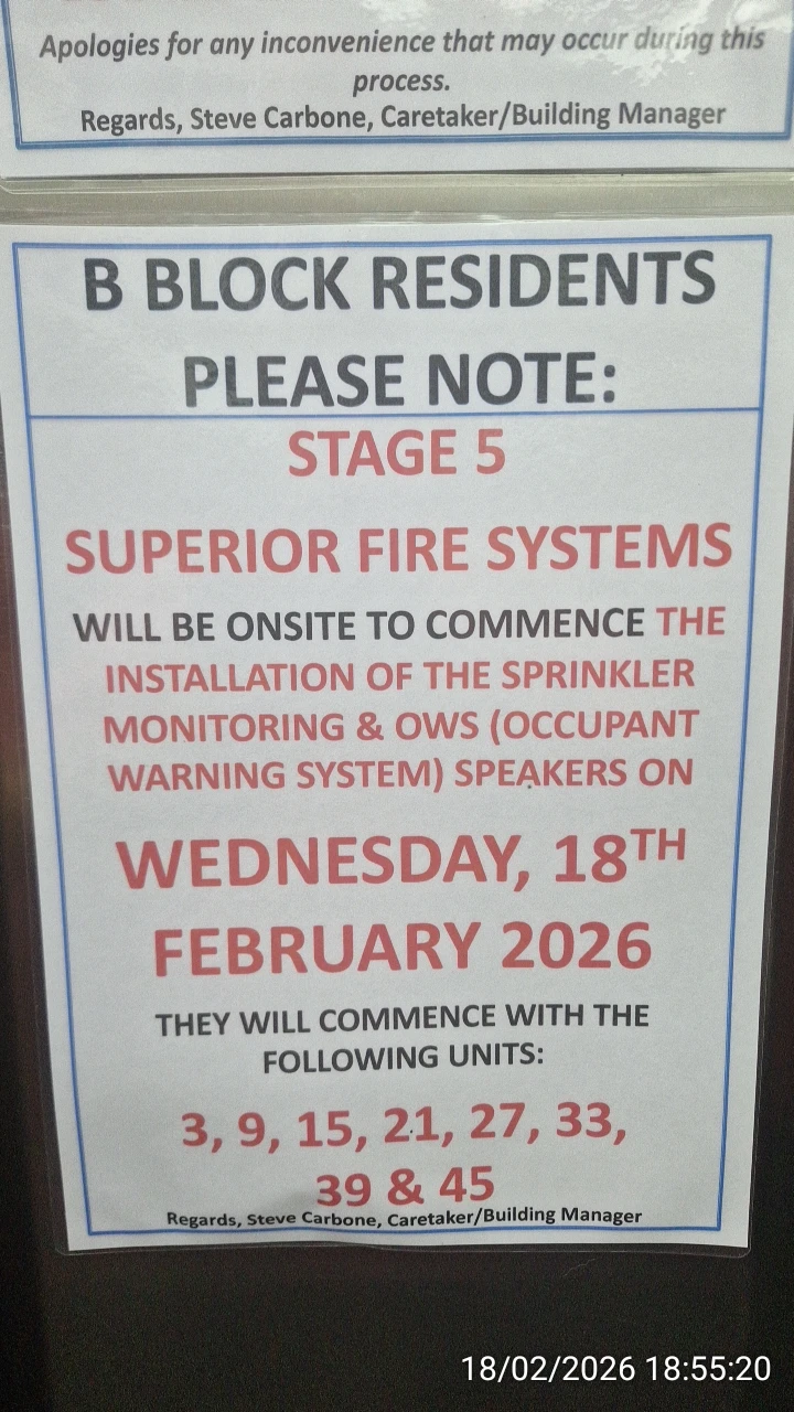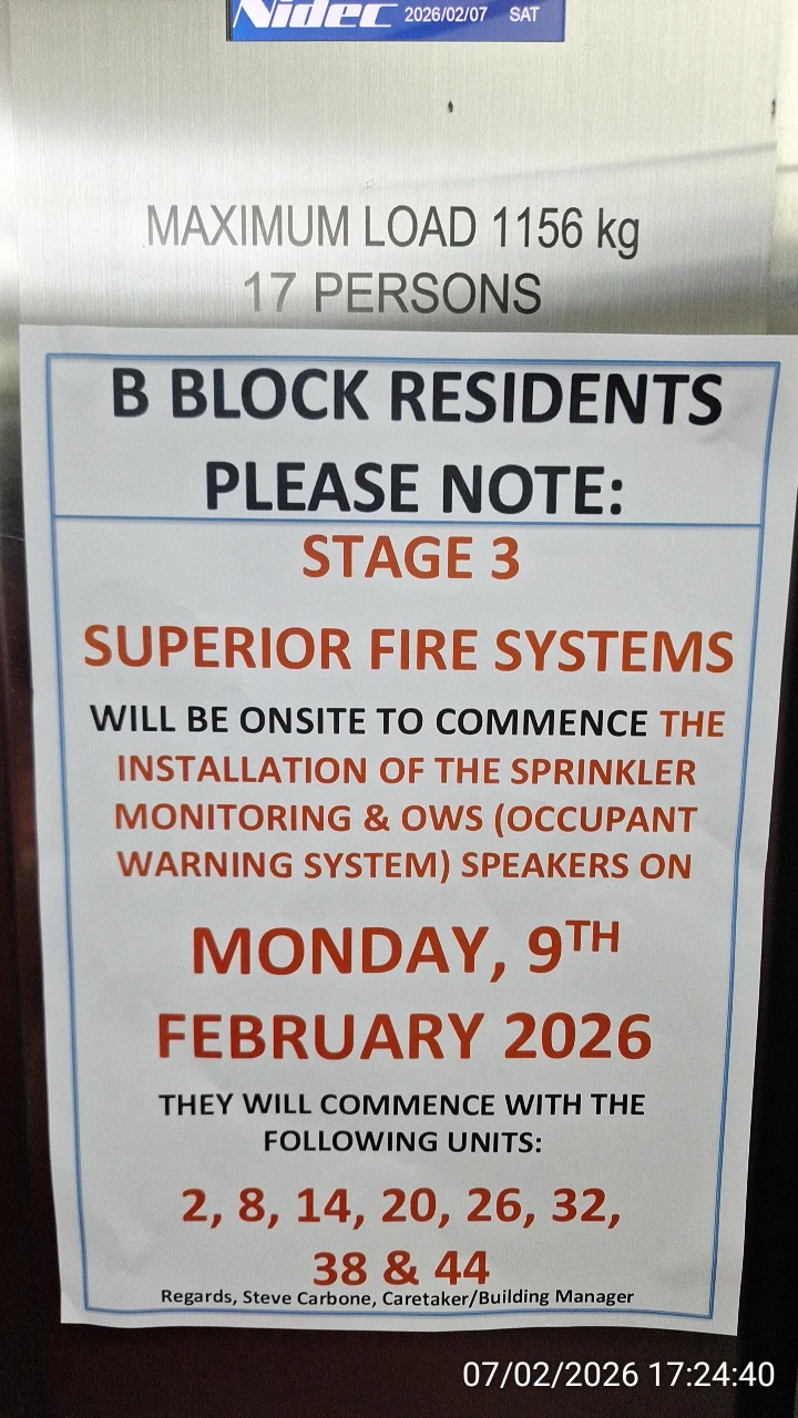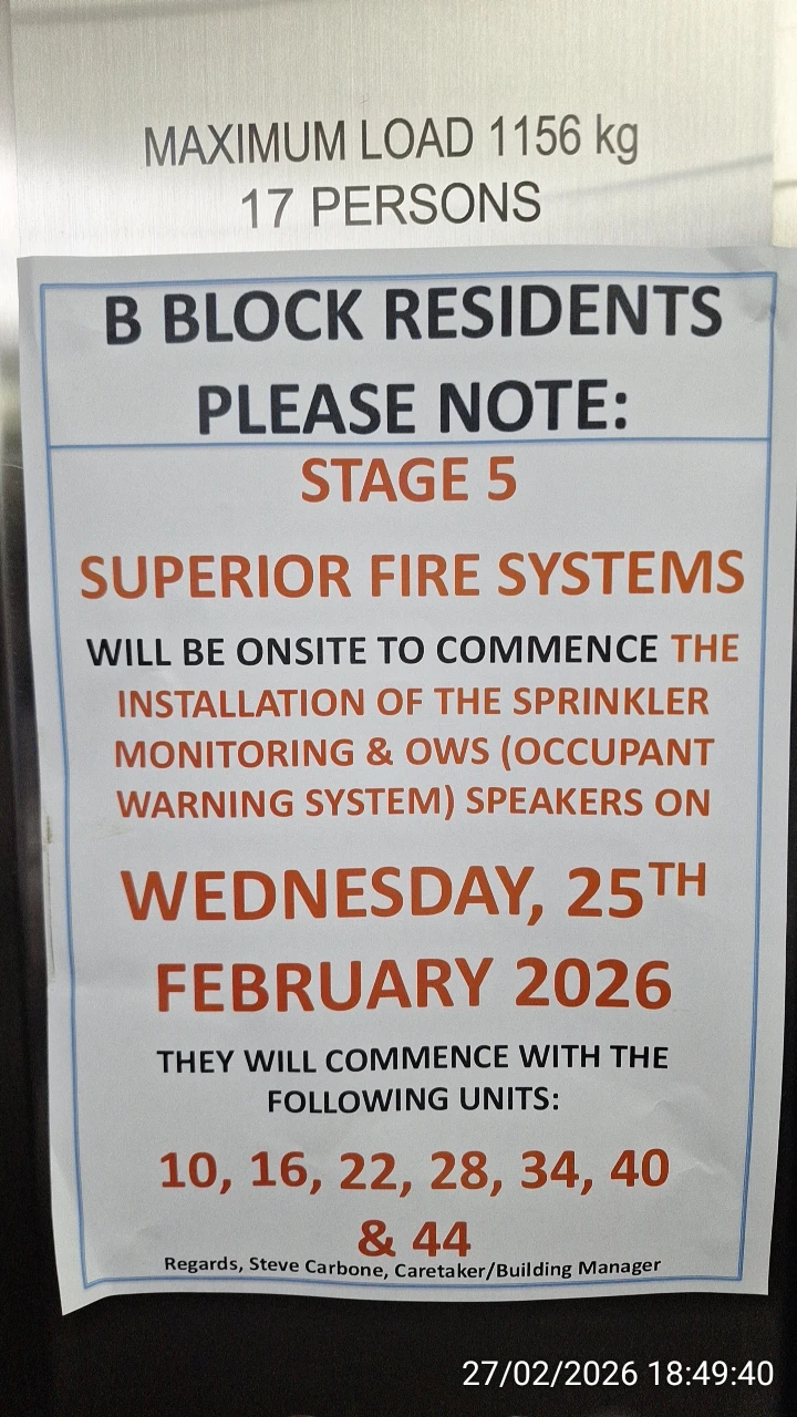 Belated Block B Occupant Warning System (OWS) installations in February 2026 after many years of refusal to comply with City of Ryde Fire Safety Orders: