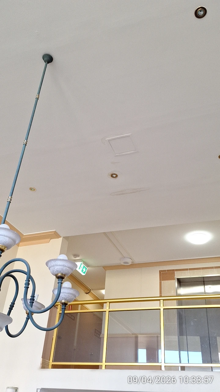 Four areas of known water leaks were clearly visible on the ceiling in Block C foyer on 9 April 2026 (Waratah Strata Management and Uniqueco Property Services only take actions when somebody highlights them):